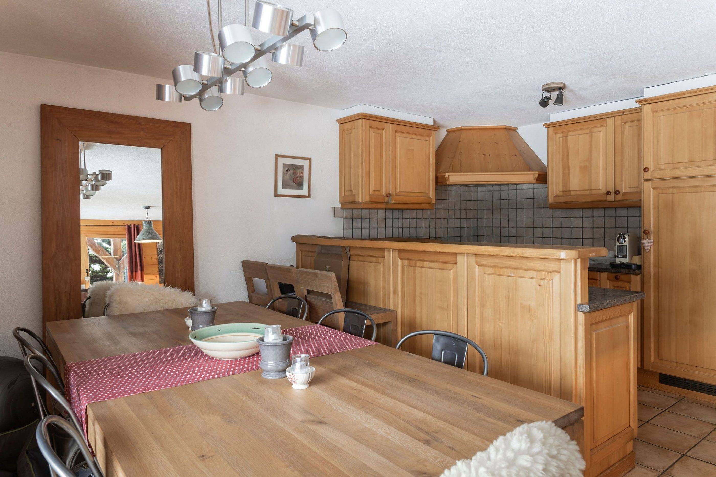 La salle à manger et le salon bénéficient d'une lumière naturelle abondante grâce à de grandes fenêtres offrant une vue panoramique époustouflante sur les montagnes, sans aucune construction future susceptible d'obstruer ce paysage.