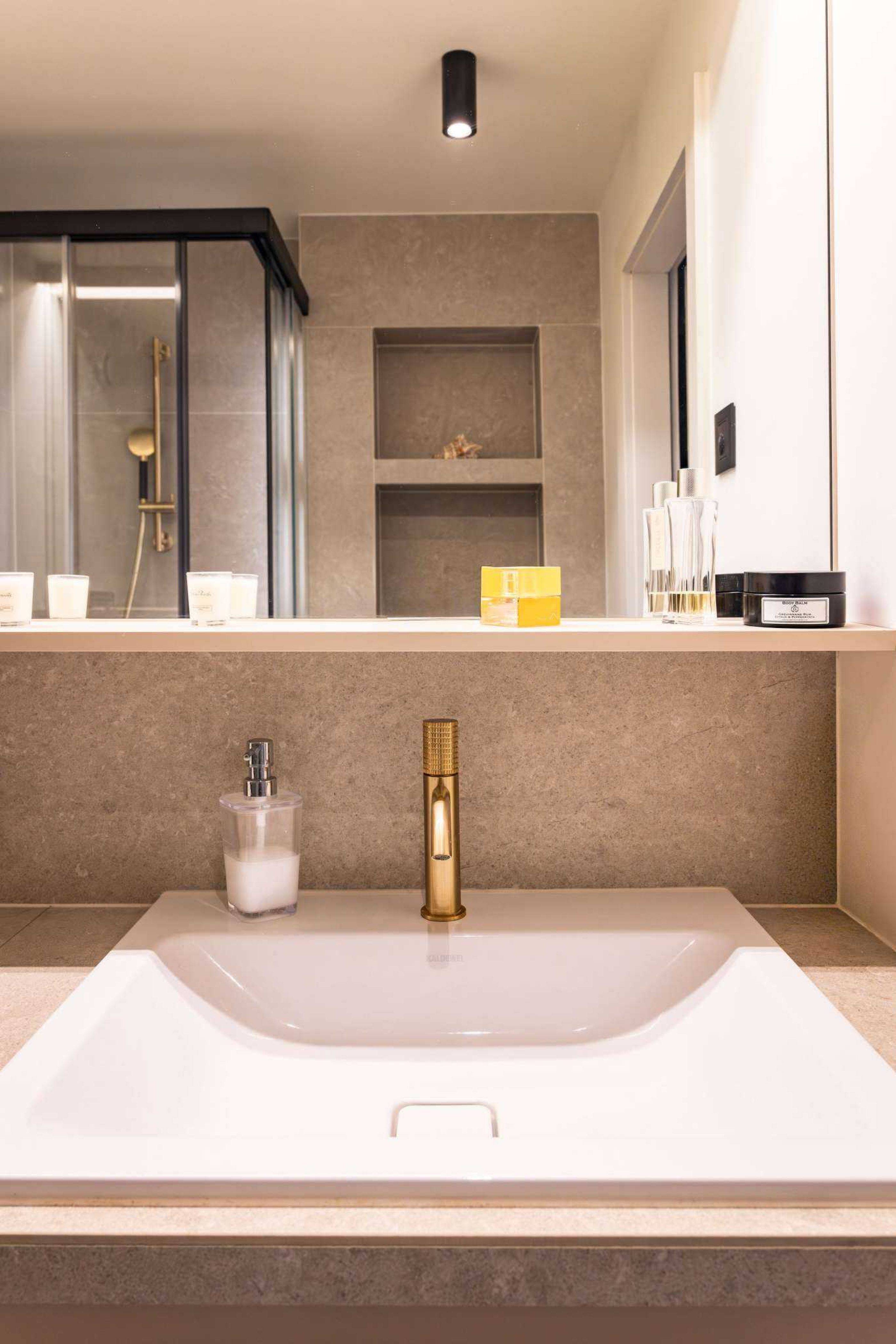 - L'appartement de deux chambres, dispose d'une salle de bains attenante avec douche dans la chambre principale, tandis que la deuxième chambre est polyvalente, pouvant servir à la fois de bureau et de chambre d'amis, par exemple. La cuisine est ouverte sur le salon, ce qui est idéal pour recevoir ou passer des soirées tranquilles à la maison. La propriété dispose d'une terrasse généreuse qui entoure l'avant et le côté droit du bâtiment, offrant un grand espace pour les repas en plein air ou les bains de soleil.