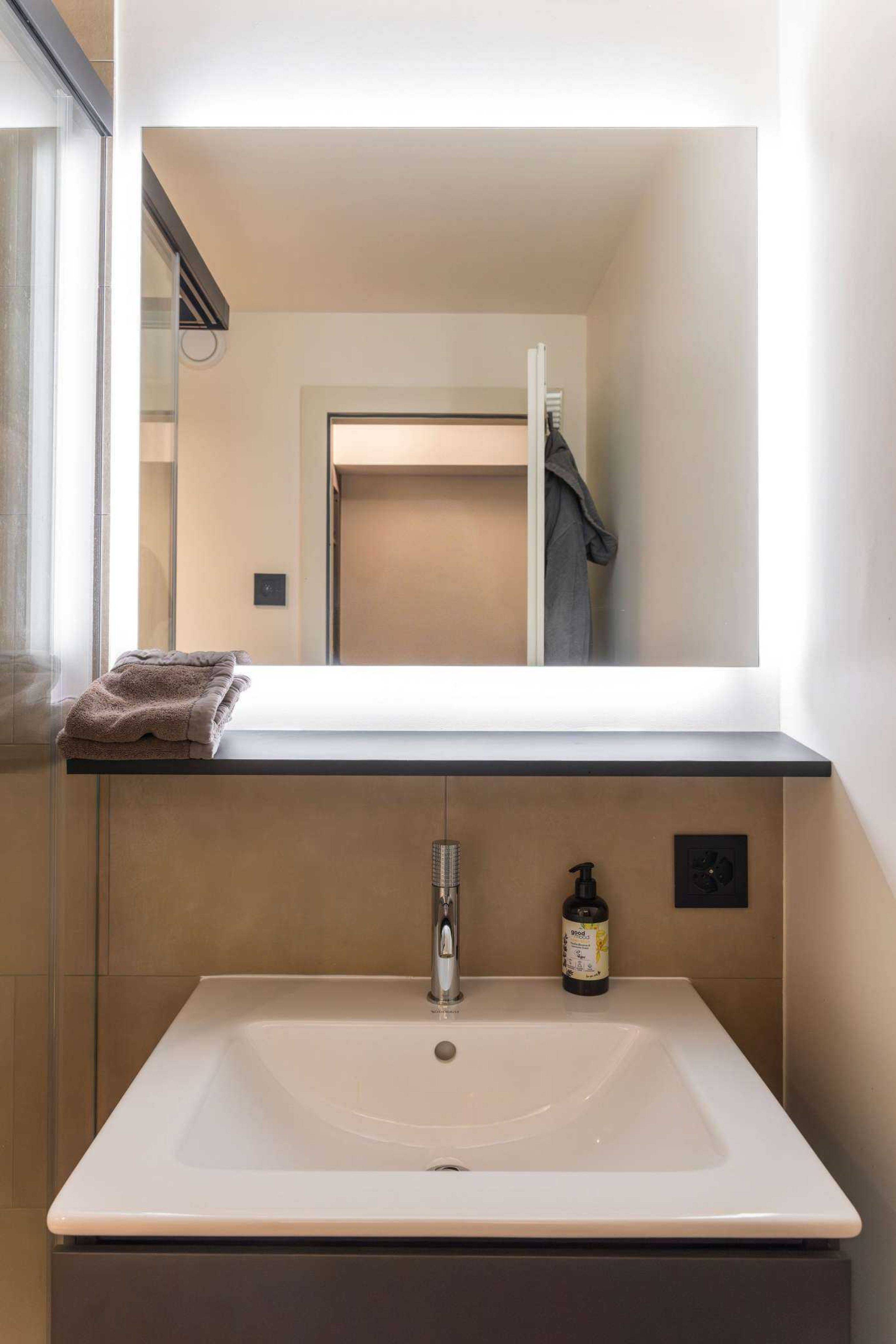 - Le studio comprend une cuisine ouverte entièrement équipée qui se prolonge dans une pièce principale éclairée par de grandes fenêtres, ainsi qu'une salle de bains équipée d'une douche et une terrasse privée.