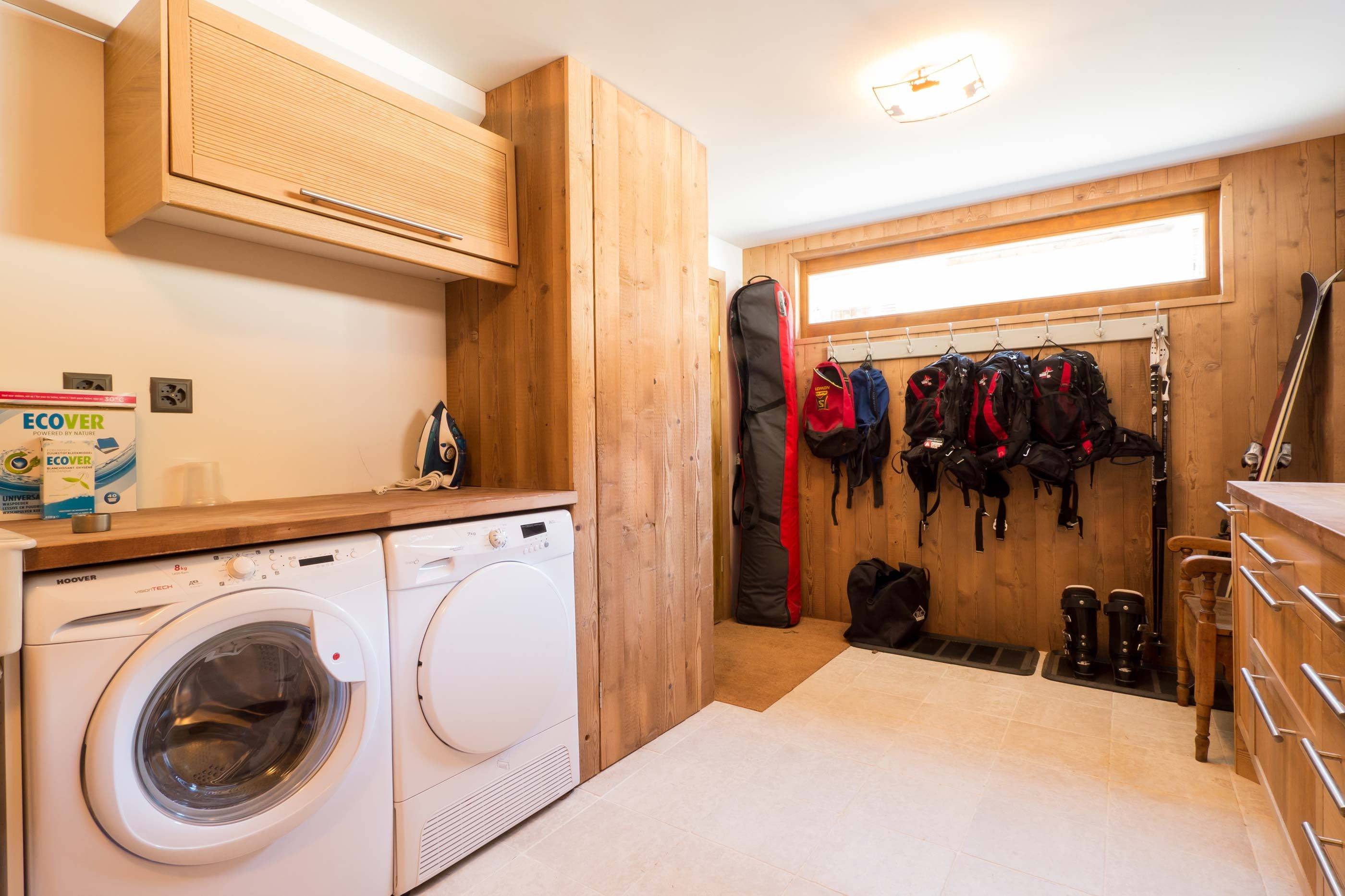 Au niveau inférieur se trouvent une grande buanderie et un grand espace de rangement pour les manteaux, les skis et les bottes.