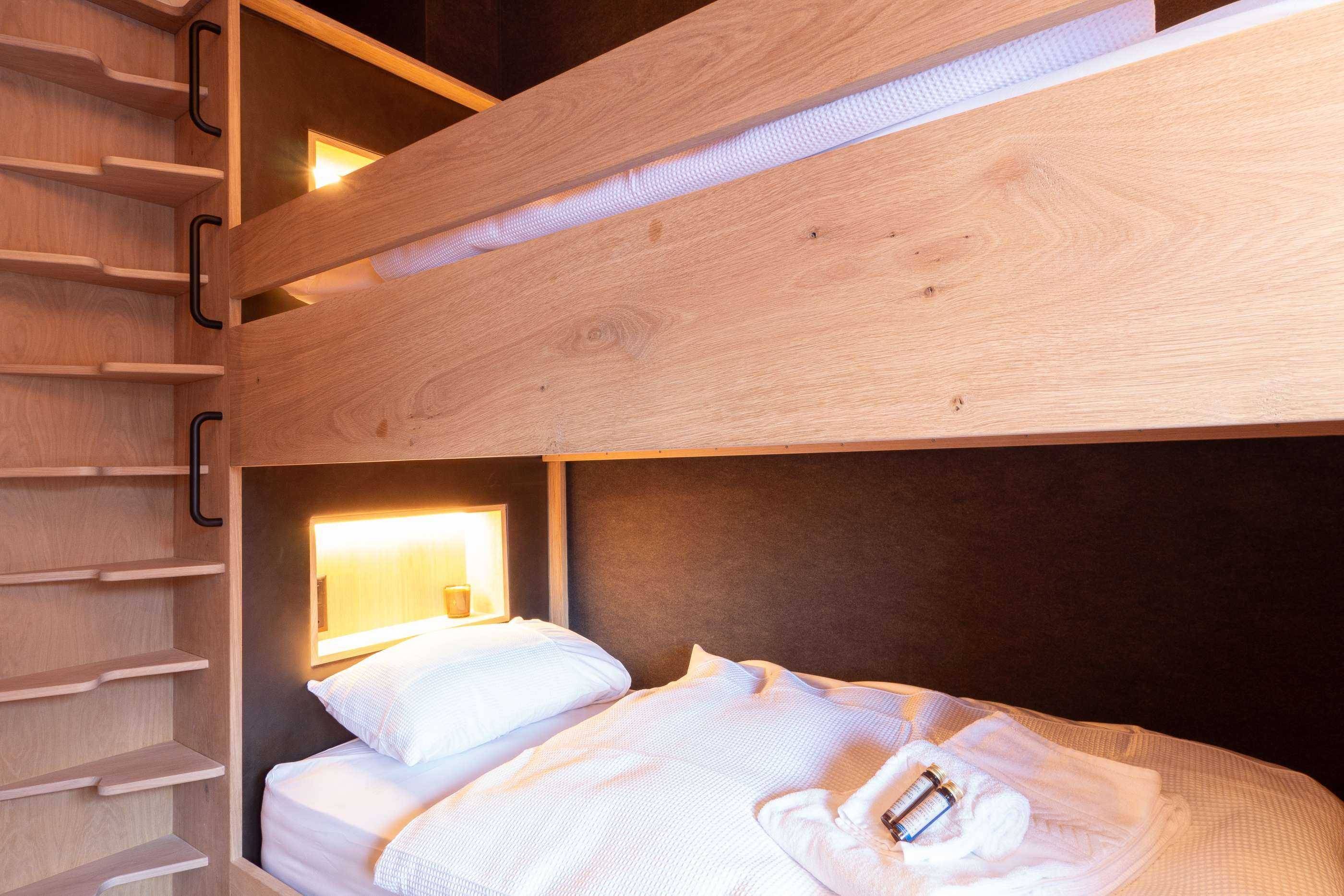 L'étage inférieur comprend une troisième chambre double, une quatrième chambre à lits superposés et une salle de bain avec baignoire. Le centre de vie de l'appartement est la magnifique pièce à vivre composée d'une grande cuisine/salle à manger/salon, donnant sur un grand balcon aménagé pour profiter du soleil. De grandes fenêtres permettent d'admirer les montagnes majestueuses et d'inonder l'appartement de lumière. Une cheminée moderne et des meubles confortables permettent de détendre les muscles fatigués après un journée sportive en montagne.