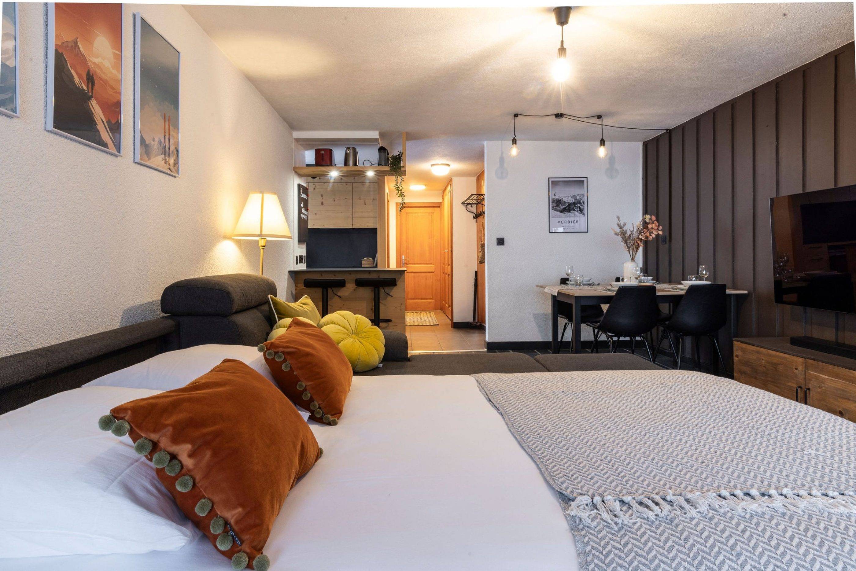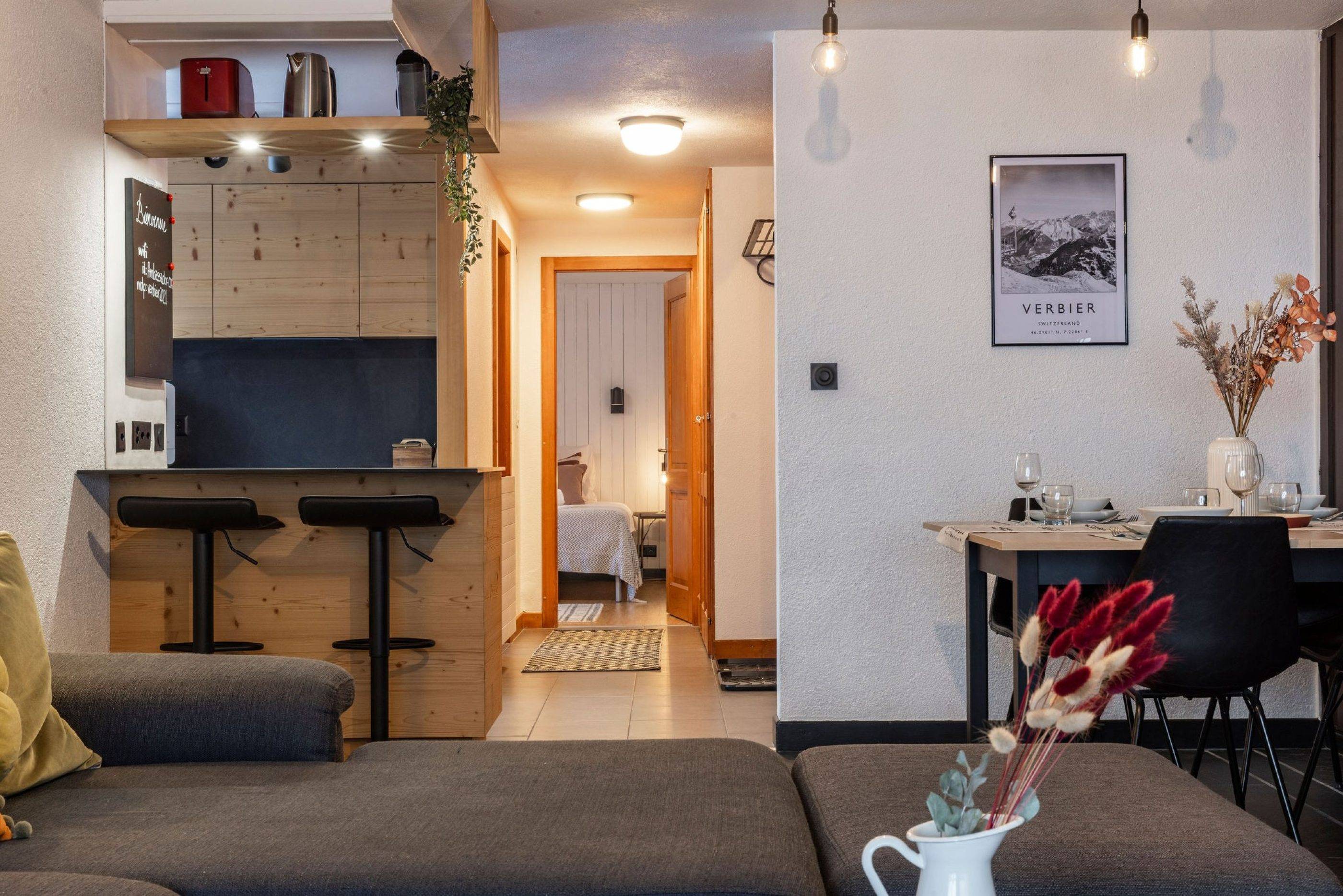 Cet appartement d'une chambre, situé dans une rue paisible au cœur de Verbier, est le refuge alpin idéal pour votre séjour. Vous serez à quelques pas de la Place Centrale, où vous pourrez profiter d'un vaste choix de bars, de restaurants et de boutiques.