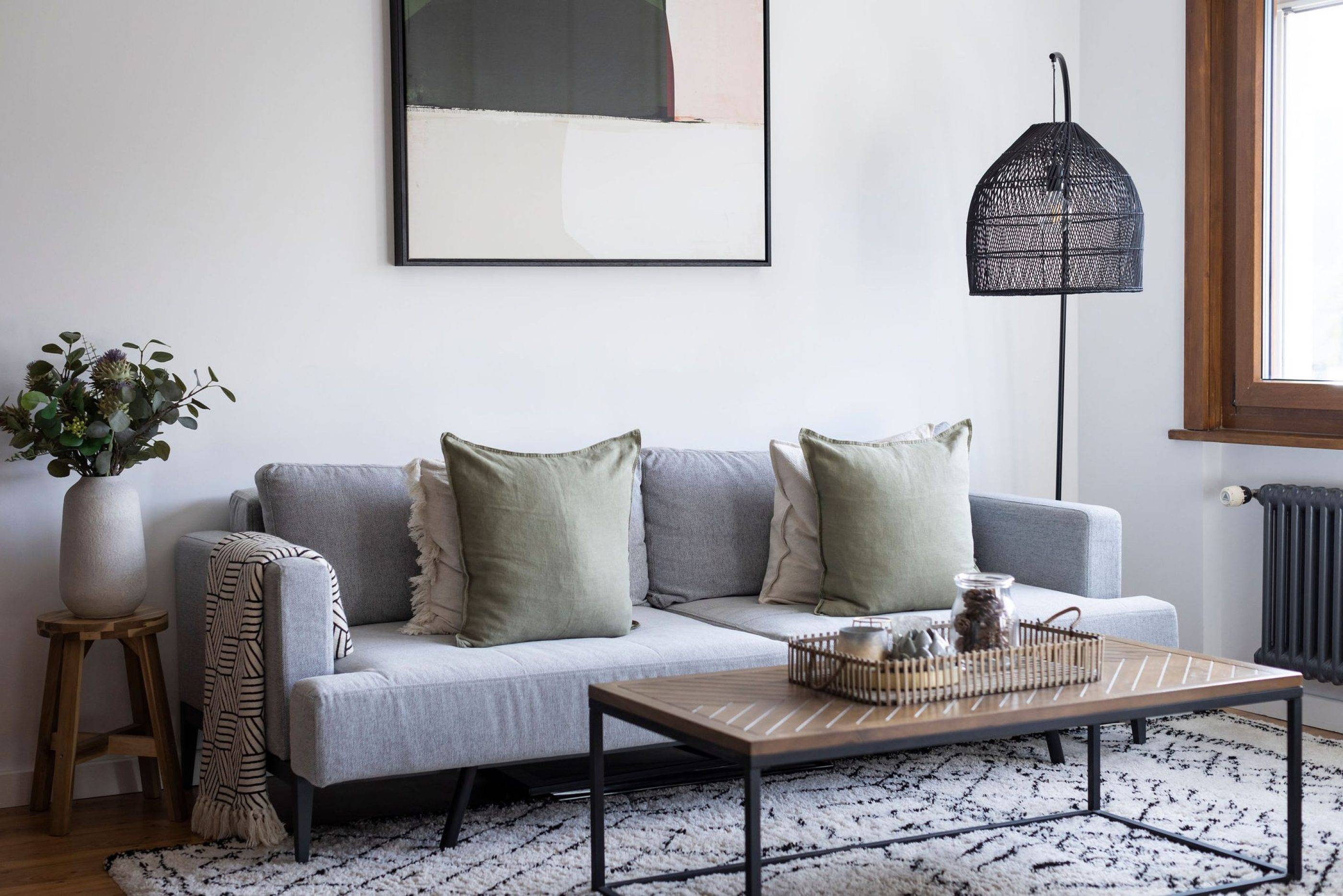 We love how much light floods the apartment through its big windows and how the choice of furnishing allows it to remain cosy and comfortable. The bedroom is spacious with ample storage and the living area is open plan to the kitchen/dining. The sofa converts into a bed, suitable for 1 adult.