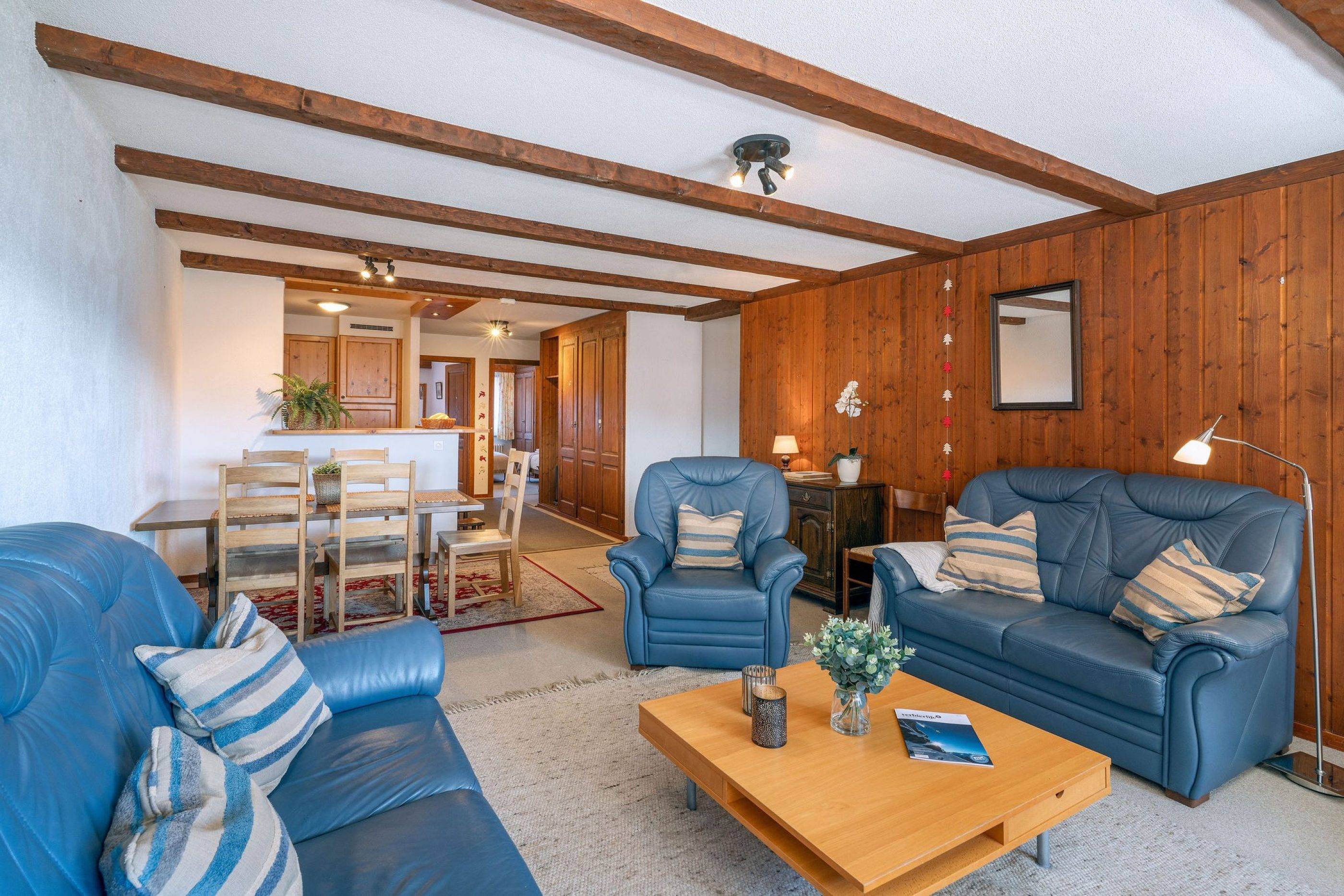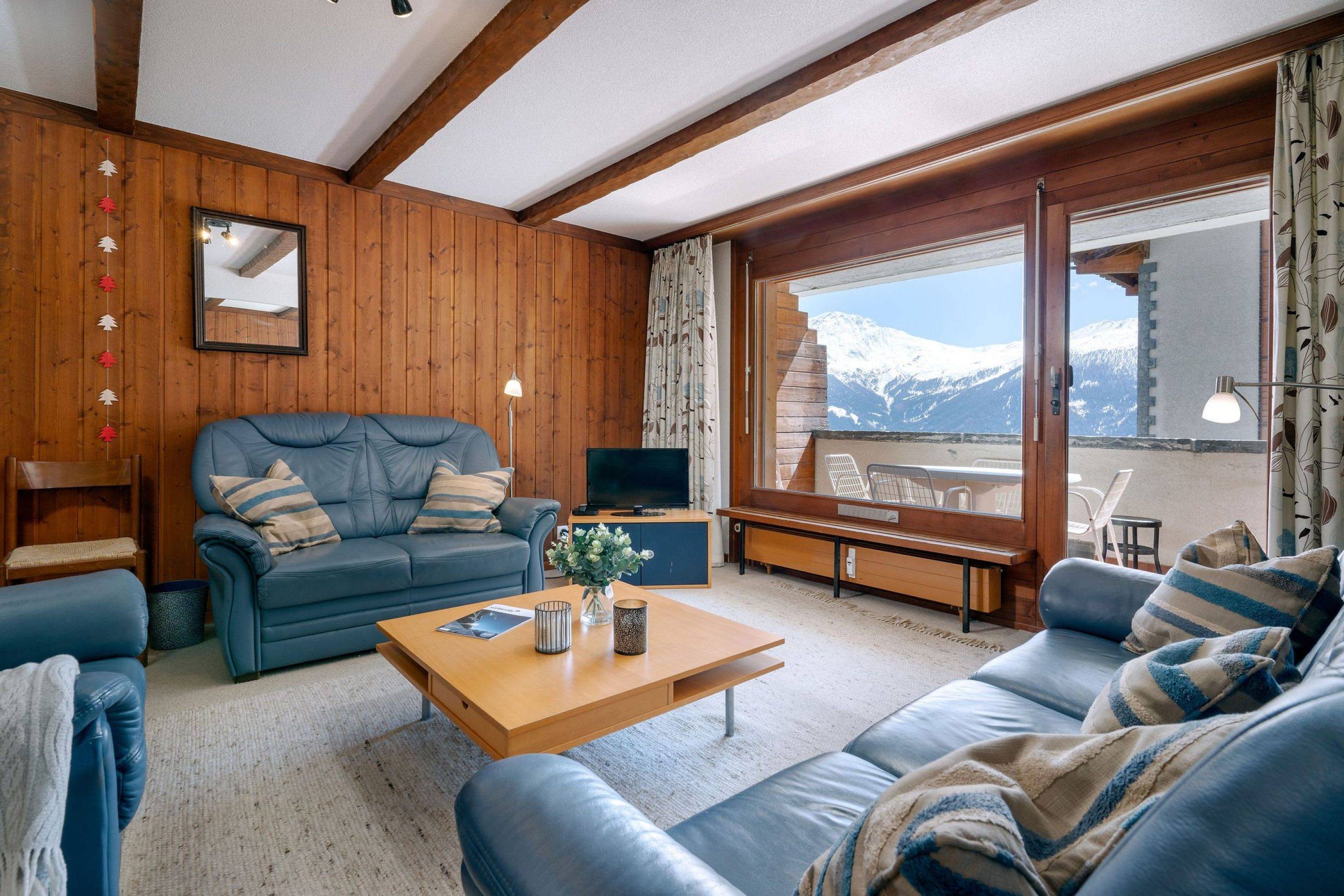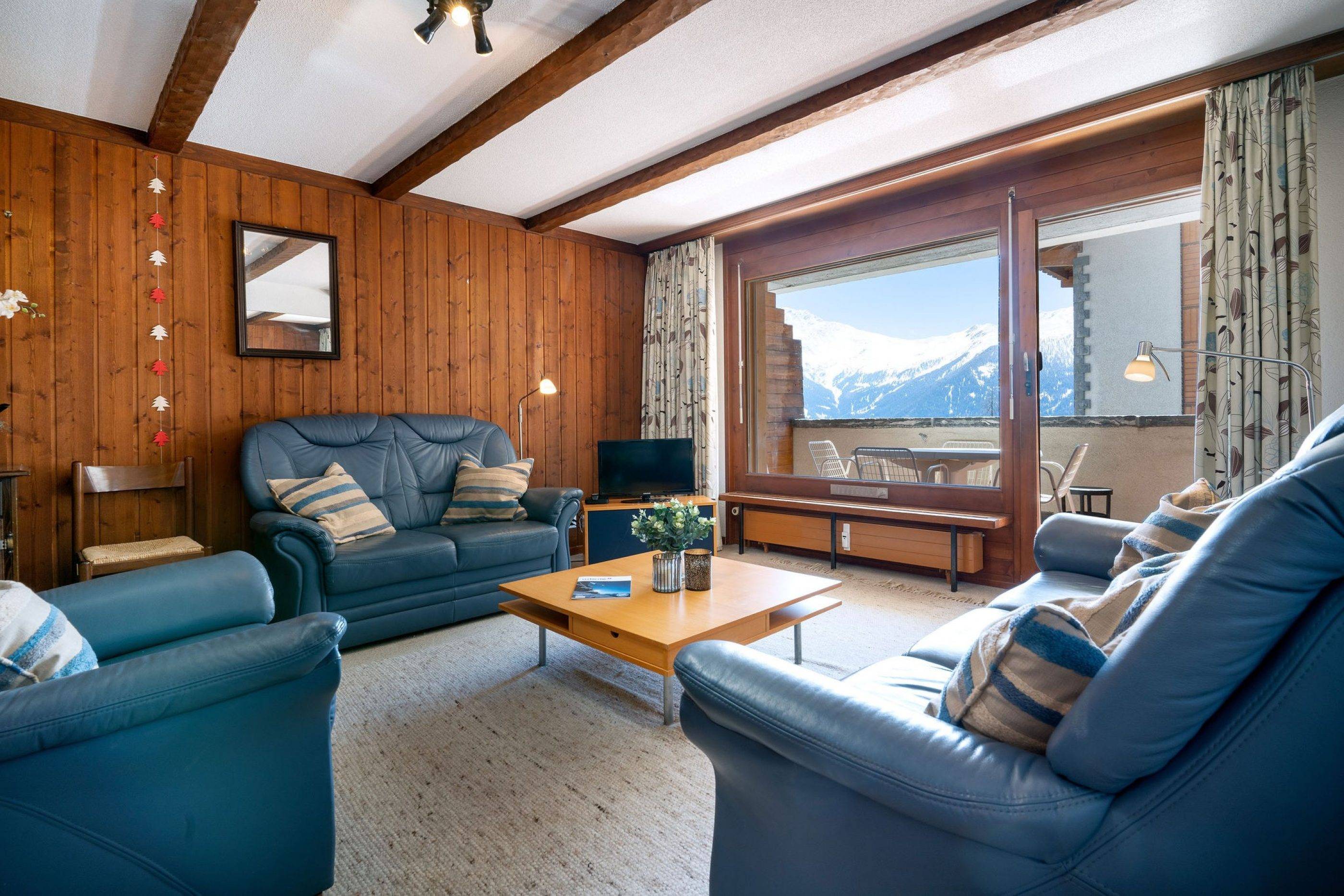 Sleeping up to 4 people, this is a wonderfully quiet apartment with a beautiful south facing view of the valley. It is cosy, comfortable and has an open plan layout with plenty of space to lounge after a tiring day on the slopes.