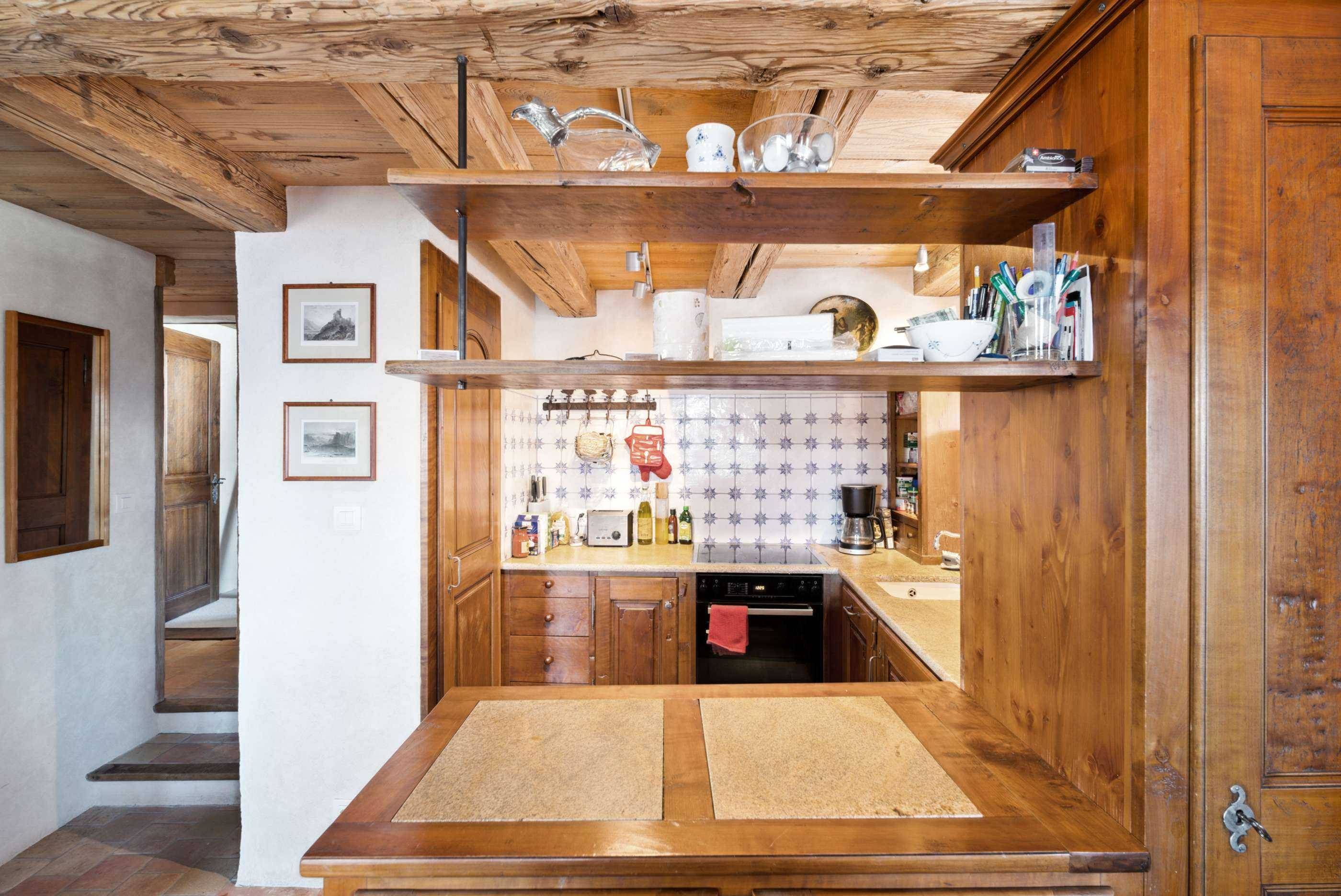 Pro Bordzai combines rustic alpine design with modern conveniences. The interior features a warm blend of wood and terracotta, creating an inviting and cozy atmosphere. The open-plan kitchen fully equipped with a large fridge and dishwasher, flows into a large dining room and a cozy living area, complete with two comfortable leather armchairs by the fire place and a large corner sofa that seats four. The living space opens onto a balcony with breathtaking views over Verbier and the surrounding mountains. Perfect space for hosting après-ski gatherings with friends !