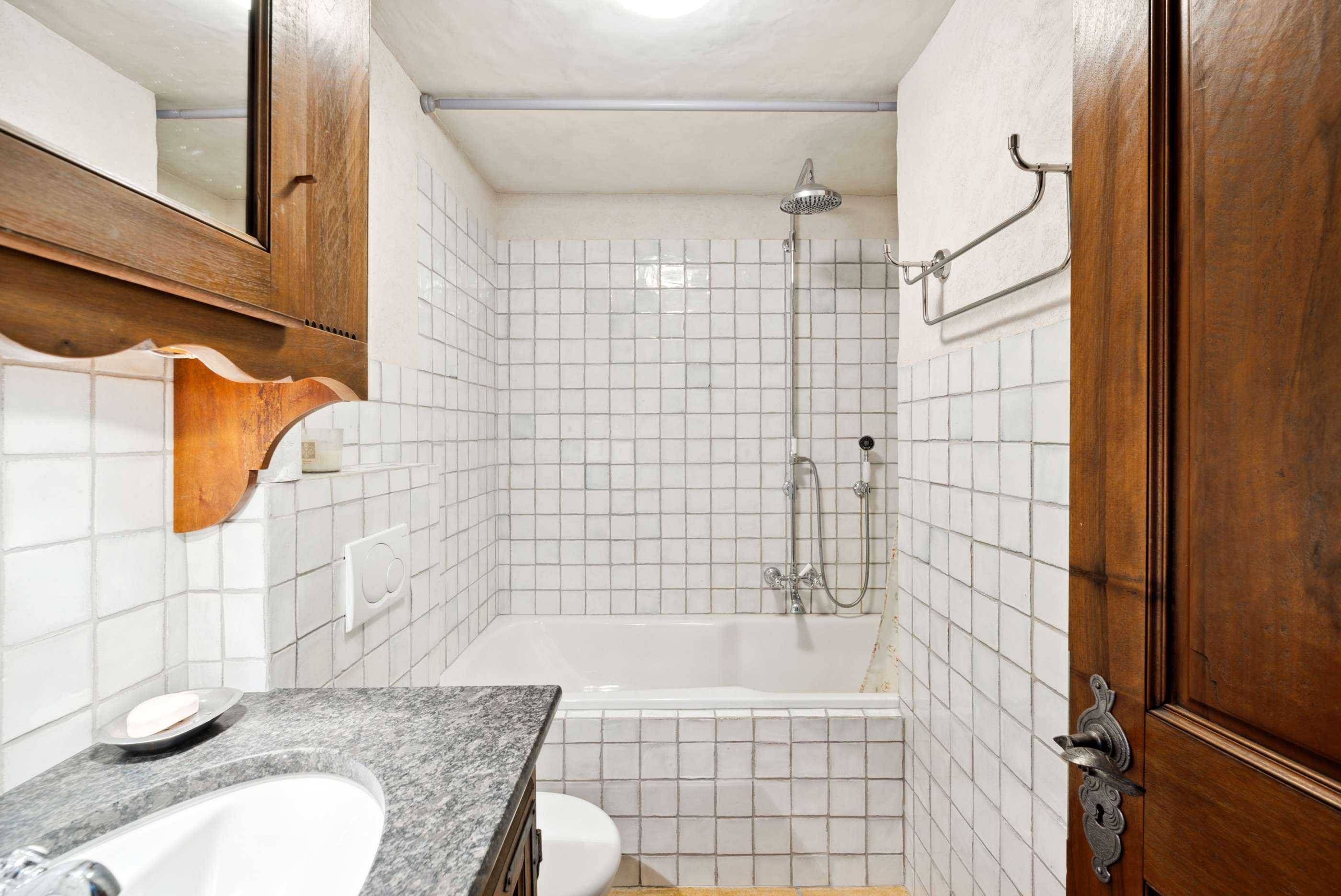 Heading downstairs, you'll discover the master bedroom, complete with a large double bed and stylish Chinese vintage cupboards. The second bathroom on this level features a relaxing bathtub, with the same attention to detail and quality materials. The ground floor also houses a laundry room with a brand-new washing machine and dryer, as well as a separate room for storing mountain gear and clothes, ensuring your equipment stays dry and ready for the next adventure. The property also features an underground parking place.