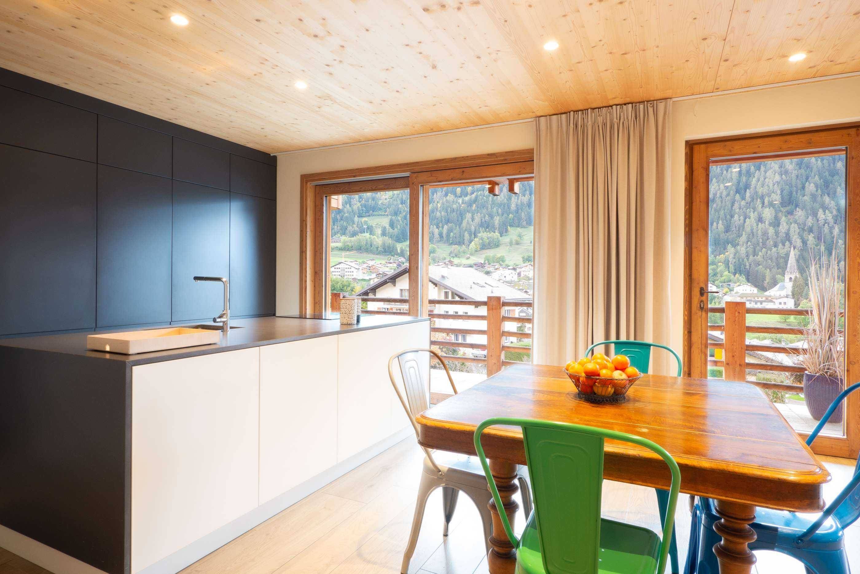 This 80m2 modern 1-bedroom apartment combines style and comfort to create a welcoming home base for your mountain getaway.