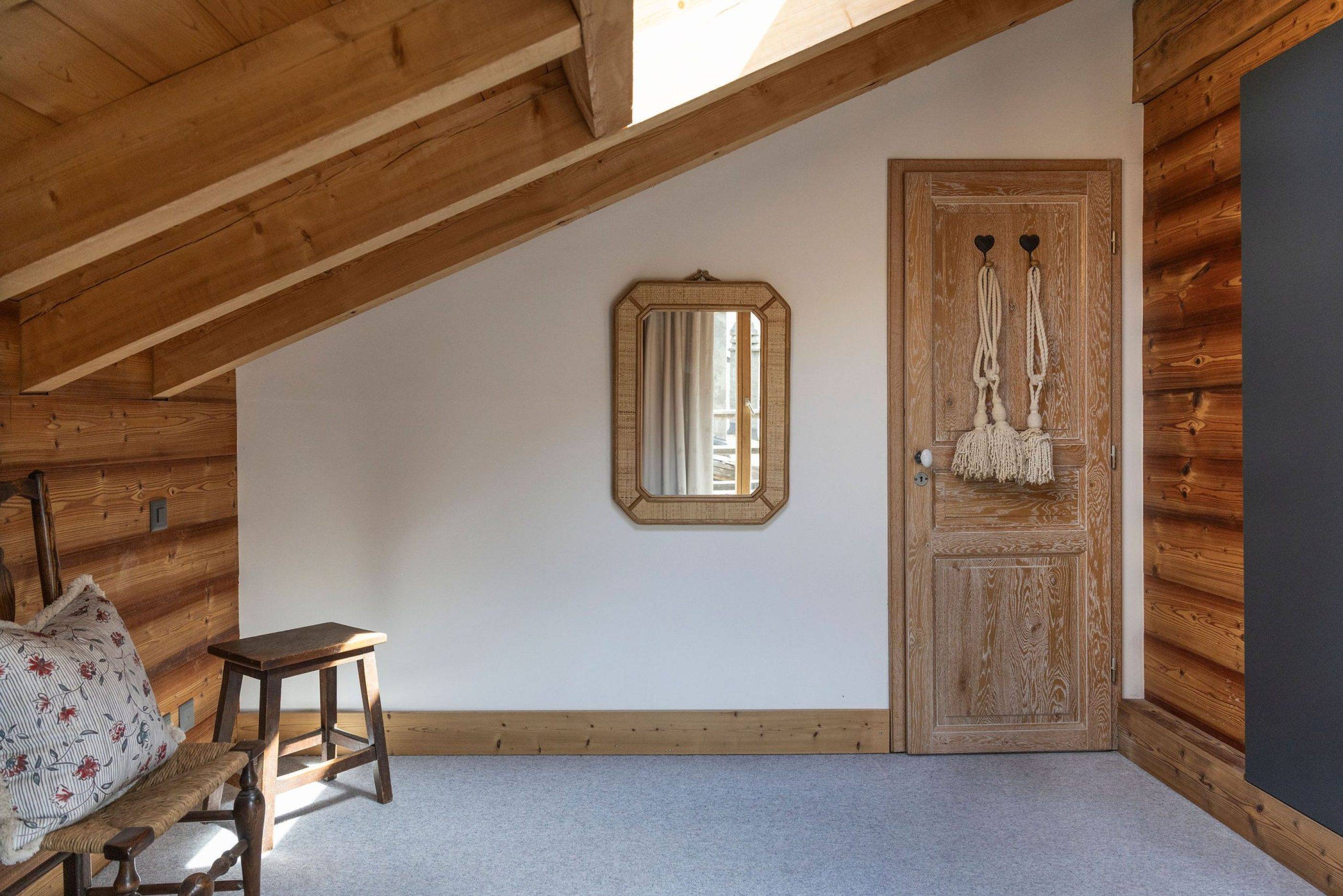 The chalet is set over three levels. The lower floor includes a bedroom, bathroom, technical room, storage area, and a spacious laundry room. On the ground floor, you’ll find a kitchen with a balcony, a cozy living room, and a separate guest restroom. The mezzanine level offers an office space, while the first floor consists of two bedrooms and one bathroom.