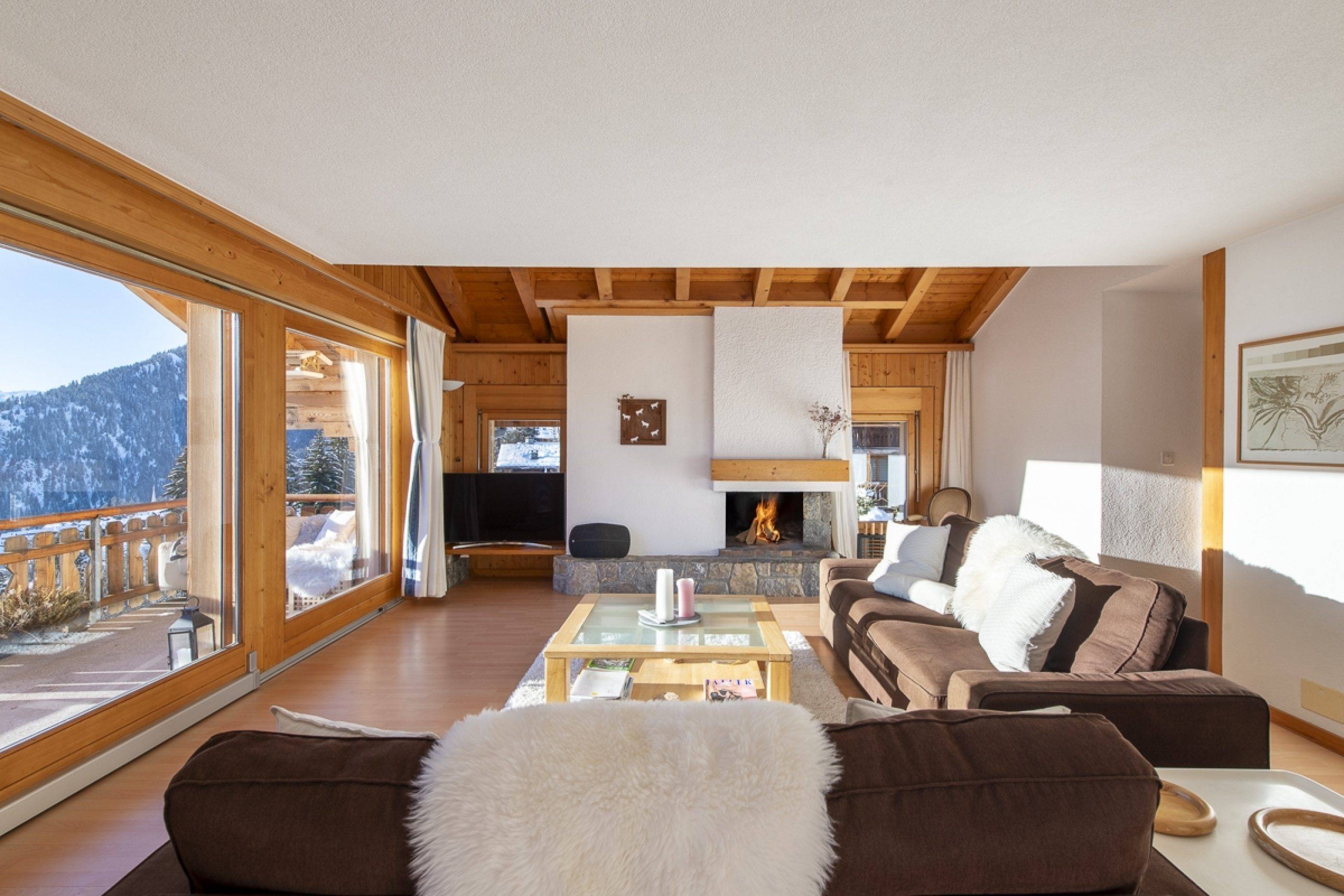 Discover Plein Ciel, a 133 sq/m, 3 bedroom and 3 bathroom top floor apartment nestled in the heart of Verbier, ideally positioned on the edge of the plateau.