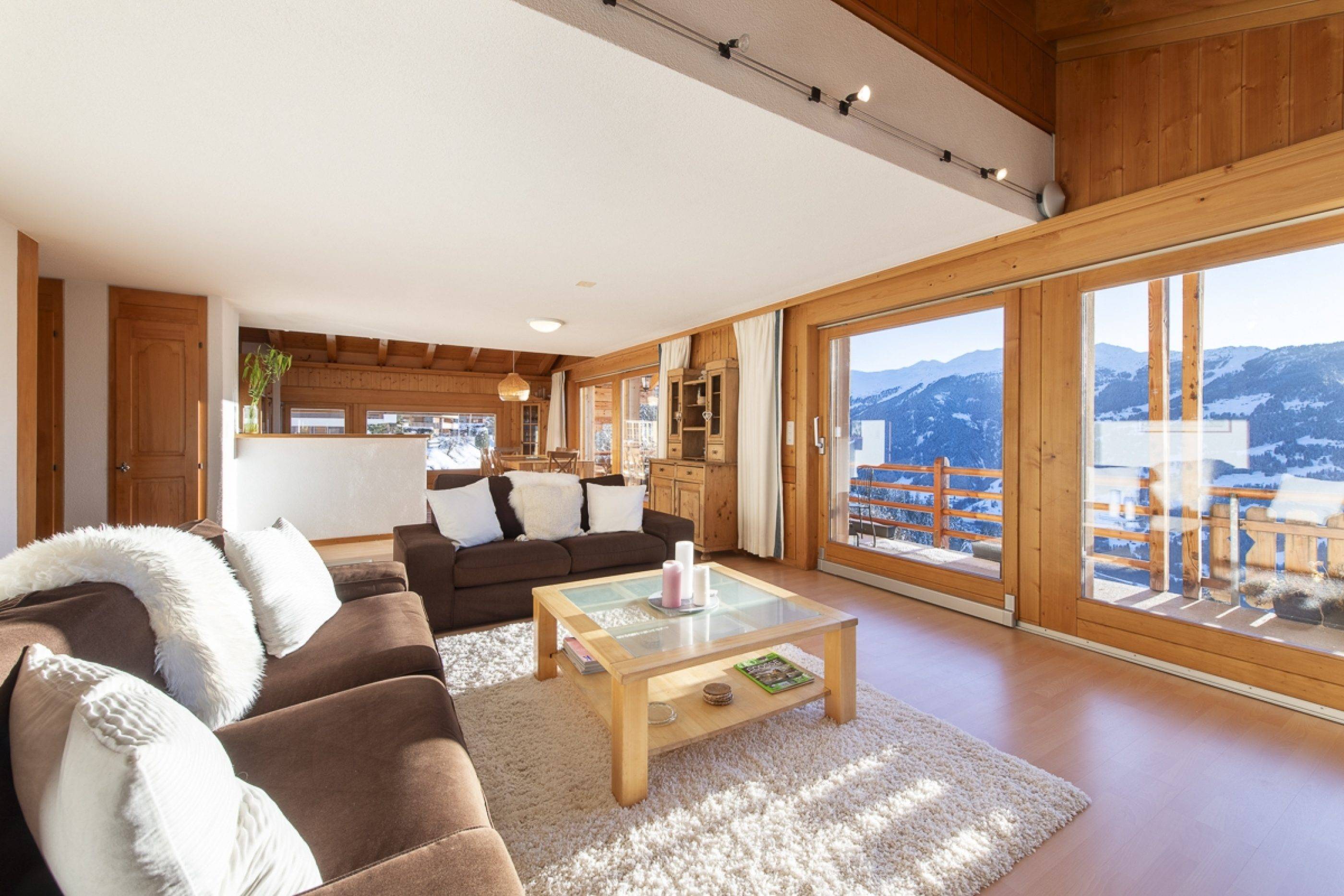 The Plein Ciel building couldn't be better located. Ideally situated on the edge of the Verbier plateau, it has stunning south facing views over the valley yet is just a 5 min walk from Place Central in the heart of Verbier. The building is private and very quiet.